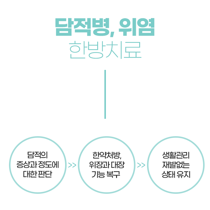 속쓰림 뿐만 아니라 소화불량, 명치통증 등의 불편함을 유발하는 원인, 담적을 의심해 보아야 합니다. 담이 인체의 어딘가에 쌓여서 병적인 상태에 이르게 되는 현상을 의미하는데요. 그 중에서도 위장관계통에 담이 쌓이 있으며 소화장애를 일으키게 됩니다. 위염은 소화력이 자꾸 떨어지게 되어 반복됩니다.