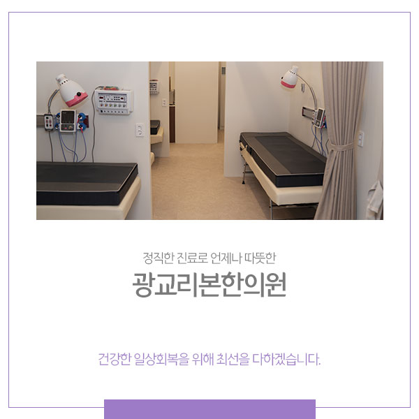 쑥을 활용한 뜸 치료와 온열치료는 따듯한 기운을 전달해 굳은 어깨근육을 풀어주며 통증과 염증을 완화합니다. 외에도 다양한 한방치료는 어깨통증 원인과 증상에 따라 다르게 적용되므로 정밀한 검진 후 광교한의원 담당 의료진과 상담을 통해 확인할 수 있습니다.