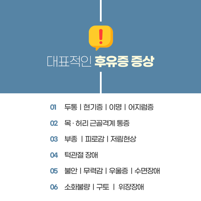 후유증은 최소 2~7일 후에 유발되는 경우가 가장 많지만, 긴 경우에는 최대 수개월 후에 증상이 발생하므로 경과를 지켜보아야 하고, 꾸준하게 관리받고 관찰해야 합니다. 그리고 생활을 하면서 무리한 동작이나 자세를 피하고, 무리한 운동을 하지 않아야 하고 충분하게 휴식해주어서 회복에 힘써야 합니다.
