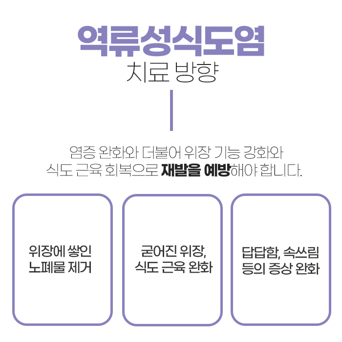 그러나 다양한 요인으로 조절의 기능이 저하되고 경계 부위가 완전히 닫히지 않게되어서 위 내용물이나 위산이 식도로 역류하게 되어 여러 가지 불편함을 유발하게 됩니다. 이러한 증상이 지속된다면 역류가 만성적으로 발생하면서 위산 때문에 식도에 염증이 발생하게 되는 것입니다. 게다가 음주, 흡연, 비만 등 악화되는 요인으로 더욱 심해질 수 있습니다.