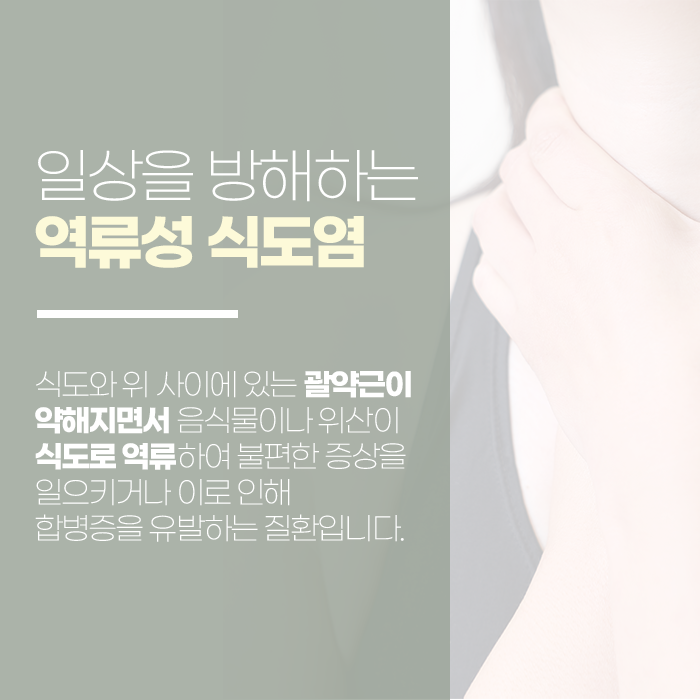 증상이 계속되면 단순한 불편을 넘어서 식도 점막의 손상, 궤양, 협착, 출혈, 식도암 등의 합병증으로 이어질 수 있기 때문에 조기 대처가 중요합니다. 간혹 가슴 통증이 심해지는 경우에는 심장 질환과 혼동될 수 있기 때문에 정확한 진단을 받는 것이 필요합니다.