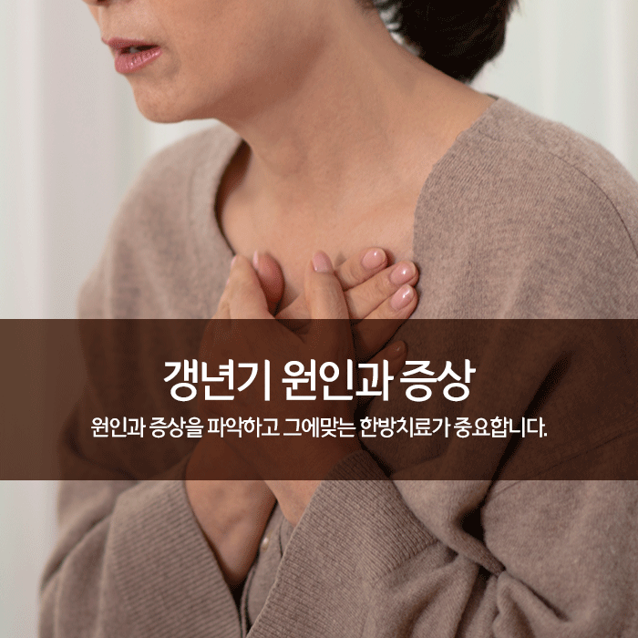 호르몬의 영향으로 근력이 감소하고 우울감이 나타나는 갱년기에 한방치료와 함께 건강한 식생활, 규칙적인 근력 운동과 유산소 운동 등 건강한 생활을 습관화한다면 보다 원활한 증산개선과 함께 건강증진을 기대할 수 있습니다.