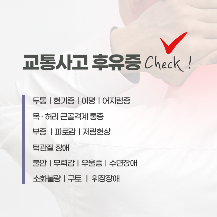 원천동야간한의원 교통사고 후유증 안심하지 말아야