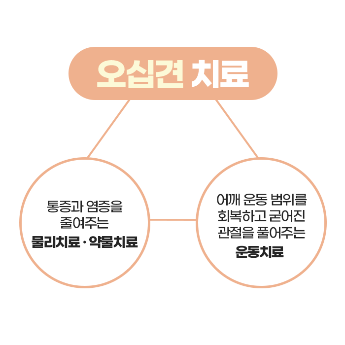 심한 경우에는 약물치료(소염진통제 등)나 주사치료(스테로이드 주사 등)를 병행할 수 있으며, 보존적 치료에도 호전이 없으면 수술적 치료를 고려하기도 합니다. 수술 후에도 반드시 일정 기간 재활운동을 지속해야 어깨 관절의 움직임을 최대한 회복할 수 있습니다.