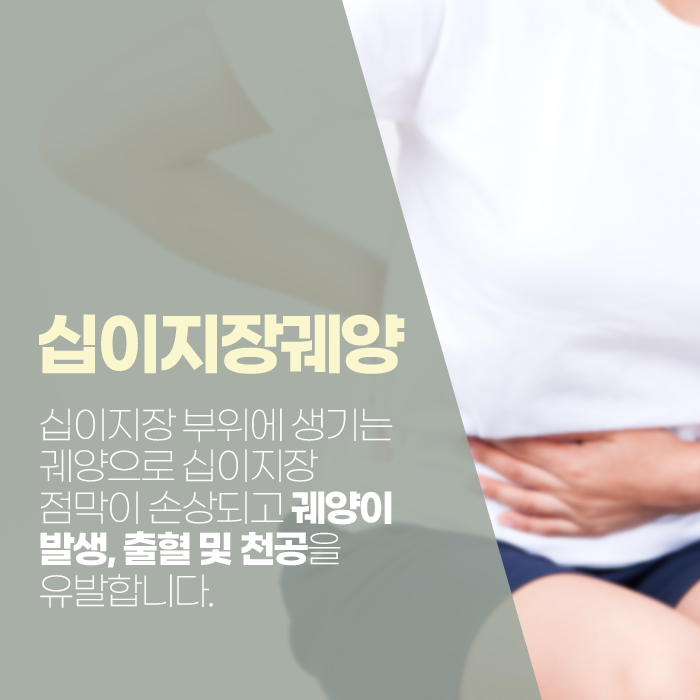 하지만 여러 가지 원인으로 인해 이 부위에 궤양이 생기면 점막에 염증과 부종이 생기고, 증상이 심해지면 출혈이나 천공 같은 위험한 합병증으로 발전할 수 있습니다. 십이지장궤양은 위궤양보다 위산 분비의 영향을 더 많이 받으며, 특히 공복 시 통증이 심해지는 경향이 있고 식사를 하면 통증이 완화되는 특징이 있습니다.