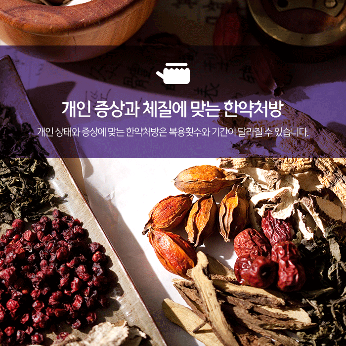 체질에 맞는 약재로 구성되 조제되는 한약은 손목주변 손상된 근육과 인대의 재생을 돕고 어혈을 제거해 염증과 통증을 완화하여 기능회복을 돕습니다. 또 건강한 혈액을 생성해 면역력 향상과 전반적인 건강증진을 돕습니다. 본원에서 처방드리는 한약은 환자분 손목통증 원인과 증상, 건강상태에 따라 복용횟수와 기간이 달라질 수 있습니다.