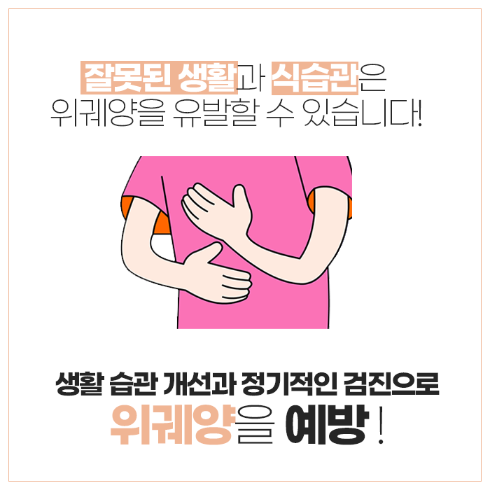위궤양을 예방하고 관리하기 위해서는 생활 습관 개선이 매우 중요합니다. 첫째, 규칙적인 식사 습관을 유지하고 과식이나 폭식을 피해야 합니다. 빈속에 자극적인 음식이나 카페인, 탄산음료, 알코올을 섭취하는 것은 피하는 것이 좋으며, 가능한 한 식사는 일정한 시간에 소화가 잘되는 음식 위주로 하는 것이 바람직합니다. 둘째, 스트레스 관리를 위해 충분한 휴식과 수면을 취하고, 명상이나 가벼운 운동 등을 통해 정서적 안정을 도모하는 것도 도움이 됩니다.