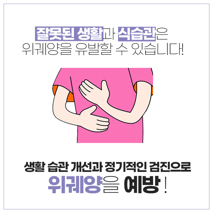 위궤양의 예방과 관리를 위해서는 생활습관 개선이 필수적입니다. 우선 규칙적인 식사 습관을 유지하고, 과식이나 폭식을 피하는 것이 중요합니다. 특히 빈속에 카페인, 탄산음료, 알코올, 자극적인 음식 등을 섭취하지 말아야 하며, 식사는 정해진 시간에 소화가 잘되는 음식을 중심으로 섭취하는 것이 좋습니다. 스트레스 관리를 위해 충분한 휴식과 수면을 취하고, 명상이나 가벼운 운동 등을 통해 정신적 안정을 도모하는 것도 큰 도움이 됩니다.