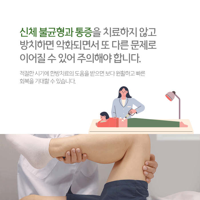 개인차가 있기 때문에 불편함이 지속된다면 검사를 통해 확인해보는 것이 바람직합니다. 척추에 가중되는 부담으로 발생하는 허리통증을 줄이고 초기 디스크 회복을 위해 추나요법, 한약, 약침, 부항, 뜸 등의 복합적인 한방치료를 진행합니다.
