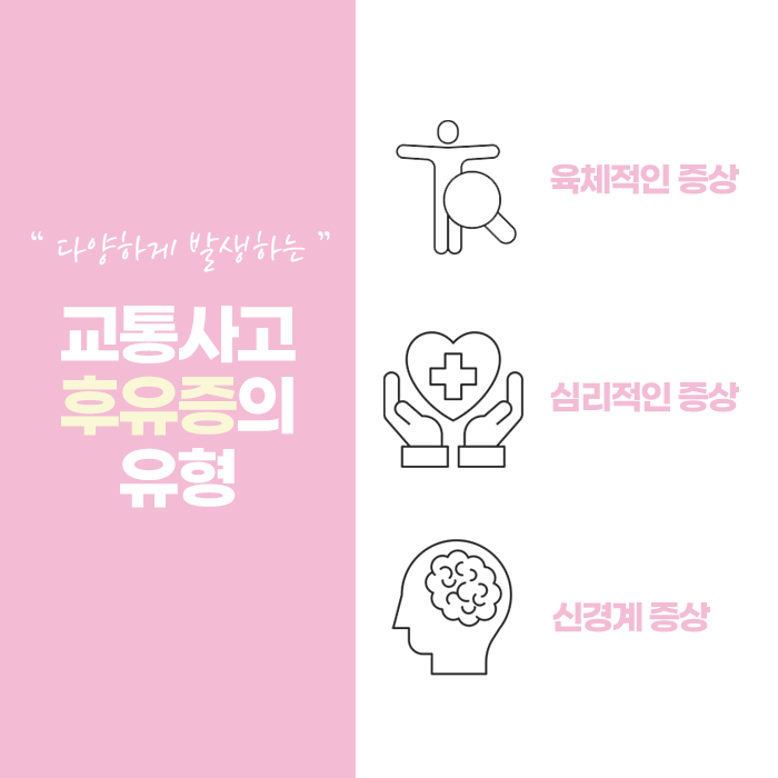 시간이 더 지나면 단순한 통증 외에도 두통, 어지럼, 만성 피로, 위장 장애 같은 다양한 전신 증상으로 확산될 수 있습니다. 이는 사고 충격이 신체의 균형을 무너뜨리고 자율신경계에 영향을 주었기 때문일 수 있습니다. 피곤함이 쉽게 가시지 않거나 집중력이 떨어지고, 평소보다 감정 기복이 심해지는 것도 그 연장선상에 있습니다.