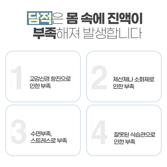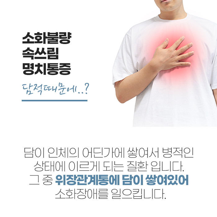 한의학에서는 검사상 특별한 이상이 발견되지 않더라도 위장 불편이 계속된다면 이를 ‘담적’의 개념으로 설명합니다. 담적은 체내에 쌓인 노폐물과 막힌 기운이 위장 주변에 정체되어 위의 움직임과 소화 작용을 방해하는 상태를 말합니다. 이로 인해 단순한 더부룩함 외에도 트림, 속쓰림, 메스꺼움, 식욕 저하, 만성 피로감, 심리적 불안 등의 다양한 증상이 나타날 수 있습니다.