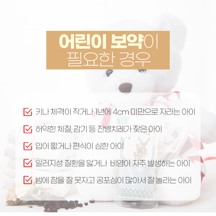 특히 녹용을 포함한 성장 보약은 성장기 아이들의 전반적인 발육을 도와주는 한약 치료로, 단순히 키를 키우는 데 그치지 않고 체력 보강, 면역력 향상, 소화 기능 개선, 정서적 안정 등 다방면에서 긍정적인 영향을 줄 수 있습니다. 정서적인 면도 빼놓을 수 없습니다. 부모의 따뜻한 관심과 지지, 아이와의 대화는 정서적 안정을 도모하고, 이는 성장 호르몬이나 전반적인 발달에 긍정적인 영향을 줄 수 있습니다. 놀이와 소통을 통해 아이 스스로 자신감을 키우는 환경도 중요합니다.