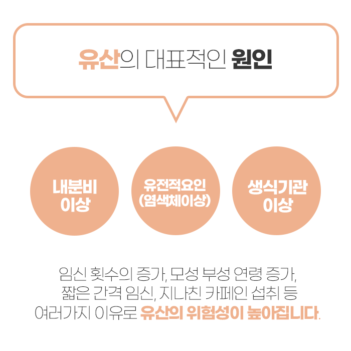유산은 전체 임신 중 10%에서 많게는 20% 이상에서 나타나는 흔한 결과를 초래합니다. 하지만 그 원인을 단순히 하나로 단정하기 어렵습니다. 특히 임신 초기 유산의 다수는 염색체의 비정상적인 조합으로 인해 발생하며, 이 경우 자연적인 생리 과정처럼 받아들여지는 경우도 많습니다. 그러나 자궁 자체의 문제, 호르몬 분비의 이상, 감염성 질환, 만성질환이나 자가면역 질환 등이 유산의 주요 원인으로 작용할 수 있고, 경우에 따라 스트레스, 흡연, 음주, 약물 복용, 영양 상태, 체력 저하 등의 생활 요인이 영향을 줄 수도 있습니다. 그 외에도 강한 충격, 사고, 고열, 심한 운동 등 외부적 환경도 무시할 수 없는 유산 유발 요인으로 작용할 수 있습니다.