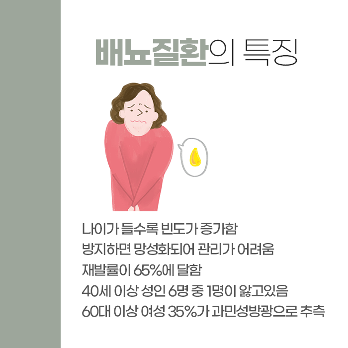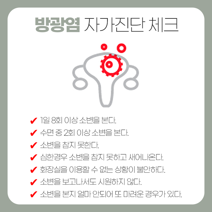 특히 중장년층 이상에서는 노화와 함께 나타나는 자연스러운 변화로 오해하기 쉽지만, 빈번한 야간 배뇨는 수면 부족과 함께 다음 날의 피로감, 집중력 저하, 활동성 감소로 이어질 수 있으며 고령의 경우에는 밤중에 이동하다 낙상하는 2차 사고의 위험성도 증가합니다. 이런 반복적인 증상을 단순히 불편함으로만 받아들여 방치할 것이 아니라 몸 상태를 점검하고 개선하려는 노력이 필요합니다. 야간뇨는 단독 증상으로 나타날 수도 있지만, 대부분은 방광염을 비롯한 비뇨기계 질환과 관련이 있기 때문에 또 다른 배뇨장애 증상과 동반되는 경우가 많고, 특히 여성에게서 빈도가 높습니다.