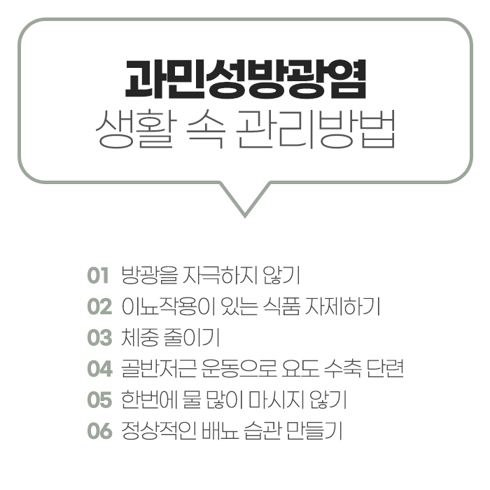 신체 활동을 일정하게 유지하고 스트레스를 잘 관리하는 것도 야간뇨 예방에 도움이 됩니다. 특히 방광염의 조기 치료는 필수적이며, 장시간 소변을 참거나, 자극적인 음식 섭취, 하체를 차게 하는 생활 습관은 방광 건강에 좋지 않기 때문에 평소에 유의해야 합니다.