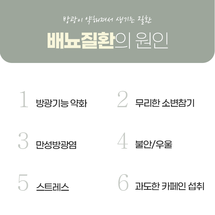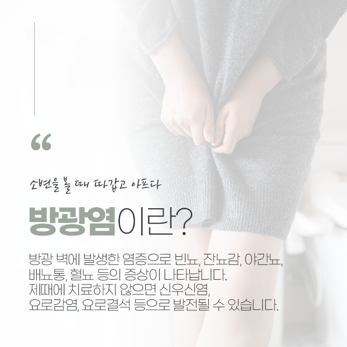 방광염은 주로 세균 감염으로 인해 방광 점막에 염증이 생기는 질환으로, 해부학적으로 여성의 요도가 짧아 외부 세균이 침투하기 쉬운 구조이기 때문에 더 쉽게 발생합니다. 방광염이 있을 경우 방광의 저장 기능이 저하되고 민감도가 높아져 소량의 소변에도 배뇨 반응이 촉진되면서, 수면 중에도 빈번하게 소변이 마려운 증상이 나타날 수 있습니다. 이 밖에도 절박뇨, 잔뇨감, 배뇨 시 통증이나 작열감이 동반된다면 방광염과 같은 기저 질환을 의심해봐야 하며, 이러한 문제는 시간이 지날수록 야간뇨 증상을 악화시키고 전반적인 방광 기능 저하로 이어질 수 있습니다.