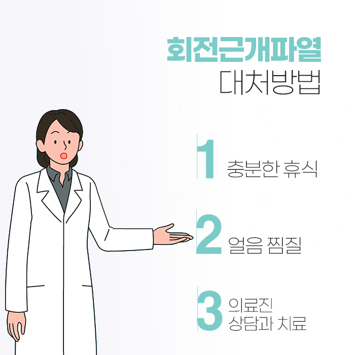 하지만 파열의 범위가 넓거나, 보존적 치료에도 통증이 계속된다면 수술적 치료를 고려해야 합니다. 수술은 손상된 힘줄을 다시 뼈에 봉합하여 원래 위치로 복원하는 방식으로, 최근에는 관절경을 이용한 최소침습 수술이 주로 시행됩니다. 관절경 수술은 절개 부위가 작고 회복이 빠르며, 수술 후 통증이 적다는 장점이 있습니다.