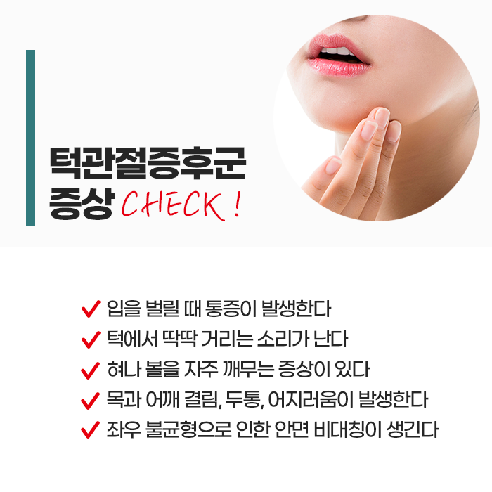 특히 장시간 컴퓨터 앞에 앉아 머리를 앞으로 내미는 자세는 턱뿐 아니라 목과 어깨에도 부담을 줍니다. 이 과정이 반복되면 단순한 턱 통증뿐 아니라 두통, 이명, 눈의 피로감, 어깨 결림 등으로 이어질 수 있습니다. 턱관절 장애는 시간이 지나면 저절로 나아지기보다, 잘못된 습관이 지속될수록 점차 악화되는 경향이 있습니다. 입이 잘 벌어지지 않거나, 벌릴 때마다 소리가 나고 통증이 점점 심해진다면 조기에 진단과 치료가 필요합니다.