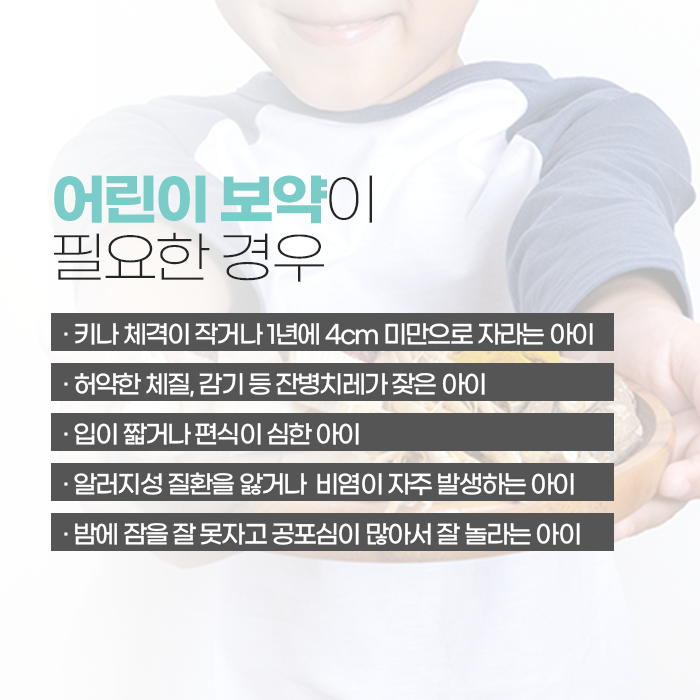 예를 들어 위장 기능이 취약한 아이에게는 소화와 흡수를 촉진하는 약재를, 숙면을 취하지 못하고 자주 뒤척이는 아이에게는 신경을 안정시키고 깊은 잠을 돕는 처방을, 면역력이 약해 자주 아프거나 쉽게 피로해지는 아이에게는 폐 기능과 체력을 보강하는 약재를 사용합니다. 자극이 강한 약재를 사용하지 않기 때문에 성장기 아이들도 부담 없이 복용할 수 있습니다.
