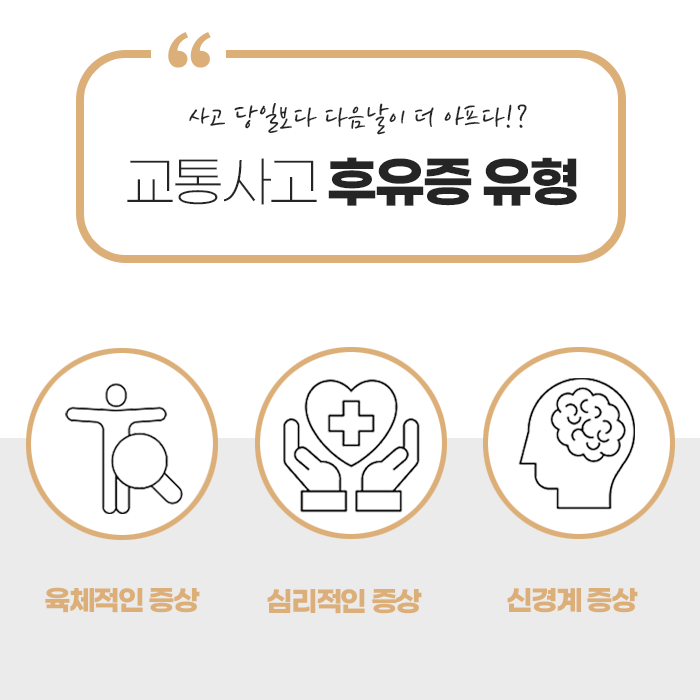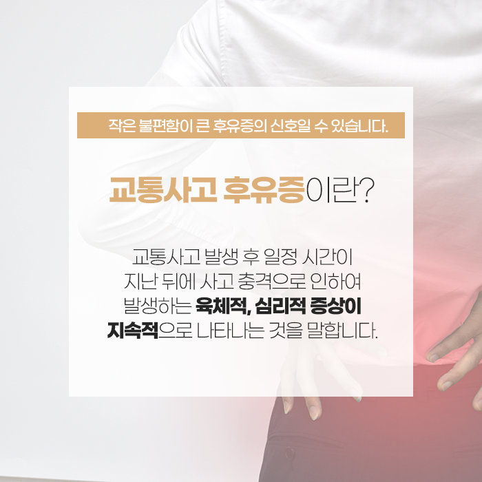 사고 이후에는 몸의 변화가 며칠 뒤부터 더 뚜렷해지는 경향이 있습니다. 처음에는 괜찮다고 생각했지만, 시간이 지날수록 목이 굳거나 허리 통증이 심해지고, 피로가 쉽게 누적되는 등 여러 증상이 나타날 수 있습니다. 이러한 후유증을 방치하게 되면 근육 긴장이 만성화되고 관절 가동 범위가 제한되며, 결국 장기적인 통증으로 이어질 가능성이 커집니다.