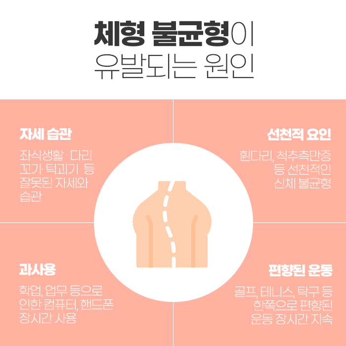 문제는 이런 증상들이 쉽게 ‘그냥 피곤해서 그런가 보다’ 하고 넘겨지기 쉽다는 점입니다. 그래서 체형 불균형은 조기에 확인하고 교정하는 것이 중요합니다.