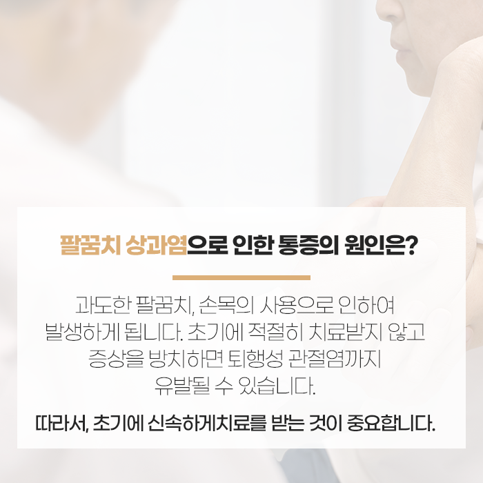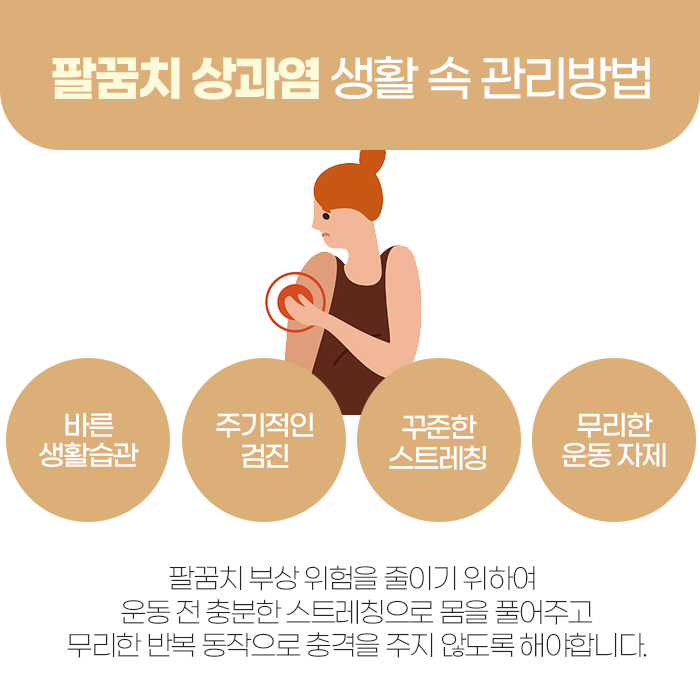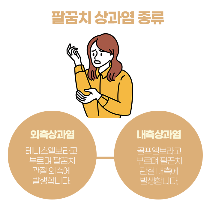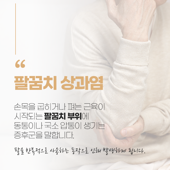 팔꿈치 안쪽 또는 바깥쪽을 눌렀을 때 통증이 날카롭게 느껴지거나, 수건을 짜거나 문고리를 돌리는 동작이 어려워지는 경우라면 상과염 가능성이 큽니다.