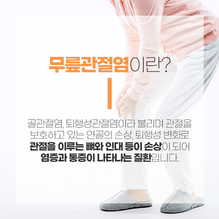 초기에는 가벼운 불편감이나 뻣뻣함 정도로 시작하지만, 그대로 두면 붓기와 통증이 반복되고 다리의 정렬 변화나 근력 저하로 이어질 수 있습니다. 퇴행성 관절염의 특징 중 하나는 활동량이 늘어난 뒤 통증이 심해진다는 점입니다. 아침에 일어났을 때나 날씨가 차가워질 때 무릎이 굳는 느낌이 강해지기도 하며, 오래 앉아 있다가 일어날 때 불편함이 두드러질 수 있습니다.