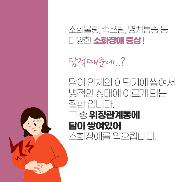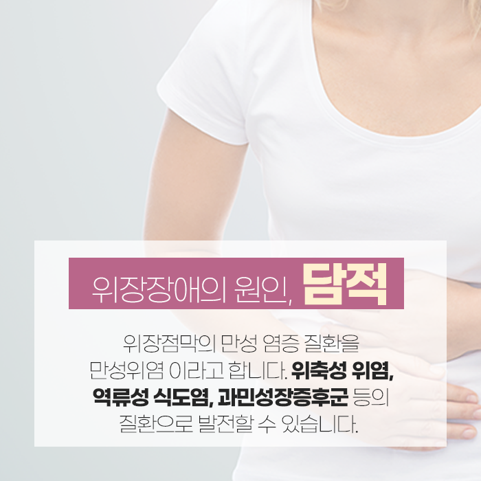 특히 만성 위염은 위 점막에 지속적인 염증이 생긴 상태로, 눈에 띄는 급성 증상이 없어도 반복적인 속쓰림, 소화 불량, 가슴 답답함 등의 불편을 유발합니다. 치료 시기를 놓치면 위축성 위염, 역류성 식도염, 심한 경우 장 기능 저하로 과민성 대장증후군까지 이어질 수 있으므로 조기 관리가 필요합니다. 이러한 반복적인 위장 불편과 관련해 최근 주목받는 개념이 ‘담적’입니다. 담적은 한의학에서 말하는 ‘체내 쌓인 병적인 노폐물’로, 특히 위장 주변에 축적되면 소화 기능이 저하되고 만성적인 증상을 유발할 수 있습니다. 음식 섭취 후 포만감이 쉽게 느껴지거나 소화가 항상 잘 되지 않는다면 담적의 영향을 의심할 수 있습니다.