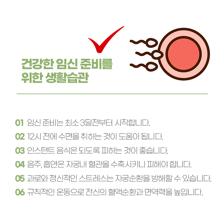 이 문제는 단순히 신체적 원인에만 머물지 않습니다. 과도한 스트레스, 잦은 야근, 수면 부족, 비만이나 저체중, 영양 불균형, 흡연과 음주 같은 생활 요소도 깊이 연관됩니다. 따라서 임신을 준비하는 단계에서는 생활 전반을 재정비하는 과정이 중요합니다. 규칙적인 식사와 적절한 운동, 충분한 휴식을 통해 기본 컨디션을 안정시키는 것이 첫걸음입니다. 체중이 지나치게 낮거나 높으면 호르몬 흐름이 불안정해질 수 있으므로 적정 범위를 유지하는 것이 도움이 됩니다.