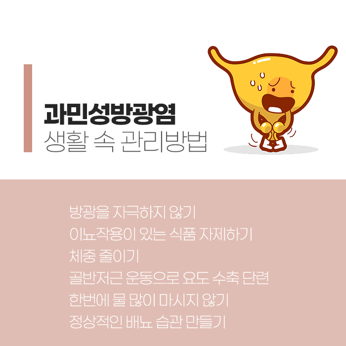 그 외에도 자가면역 이상, 호르몬 변화, 요도 역류, 과도한 스트레스, 만성 피로 등은 방광 점막을 민감하게 만들어 염증이 오래 지속되는 배경이 됩니다. 특히 폐경 이후에는 점막이 얇아지고 방어력이 약해져 염증이 더 쉽게 발생할 수 있으며, 카페인·알코올·매운 음식 등 방광을 자극하는 식습관도 증상을 악화시키는 요인이 됩니다.